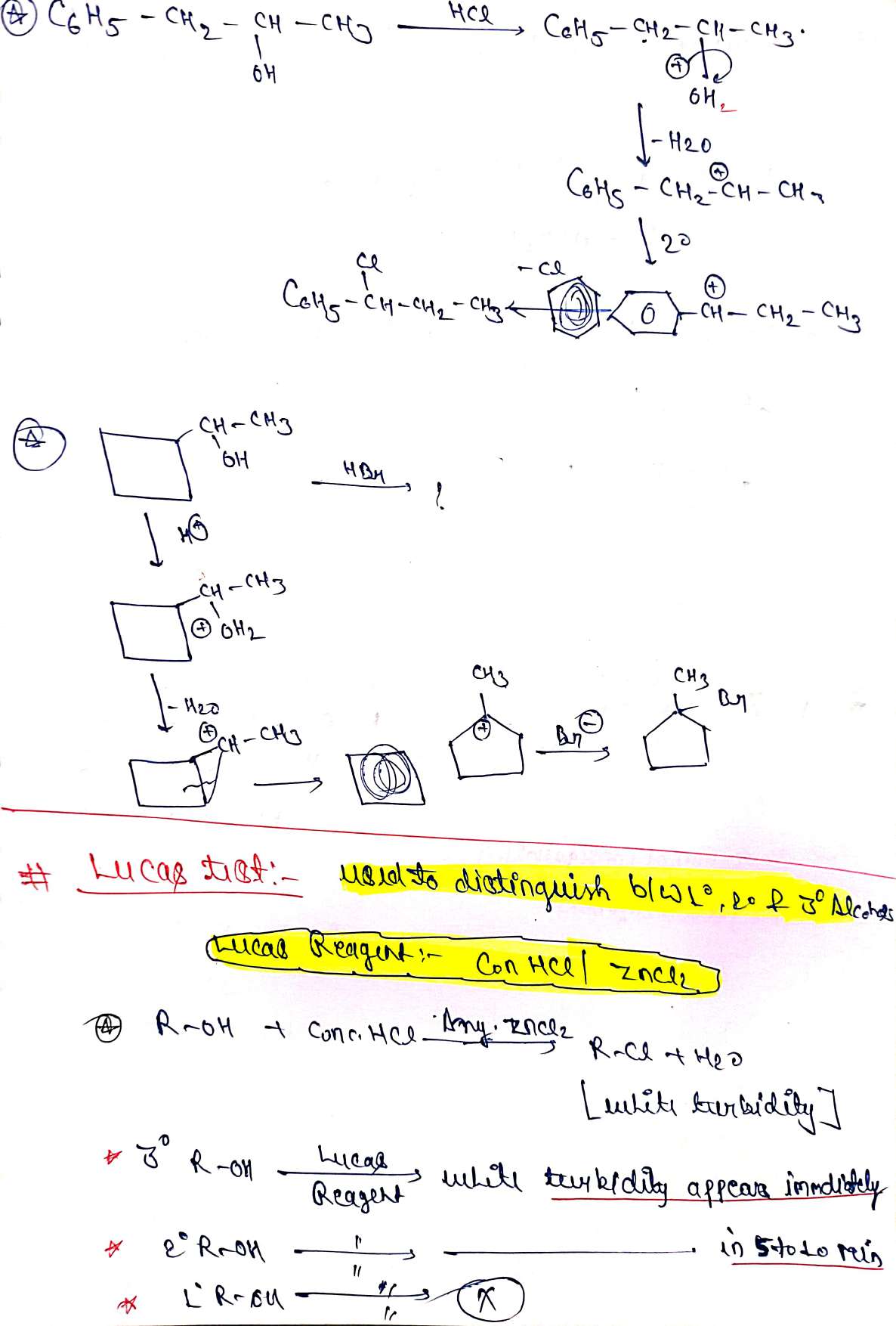 In the Organic section, you will find detailed insights into Haloalkanes, Haloarenes, Alcohols, Phenols, and Ethers. [cite_start]The notes cover important naming reactions like the Finkelstein reaction, Swarts reaction, and Hunsdiecker reaction. [cite: 5, 6] [cite_start]There is a strong focus on reactivity orders, such as the stability of carbocations and the peroxide effect in alkene reactions. [cite: 3, 10] [cite_start]For example, the notes explain why the Lucas reagent is used to distinguish between primary, secondary, and tertiary alcohols based on the appearance of white turbidity. [cite: 5, 6]